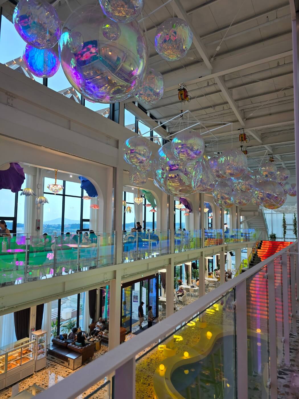 그리고 천장에 알록달록한 꽃 장식이나 예쁜 조명, 구름모양의 장식물 등 눈을 뗄 수 없는 아기자기하고 화려한 장식들이 있어서 눈이 즐거웠습니다.