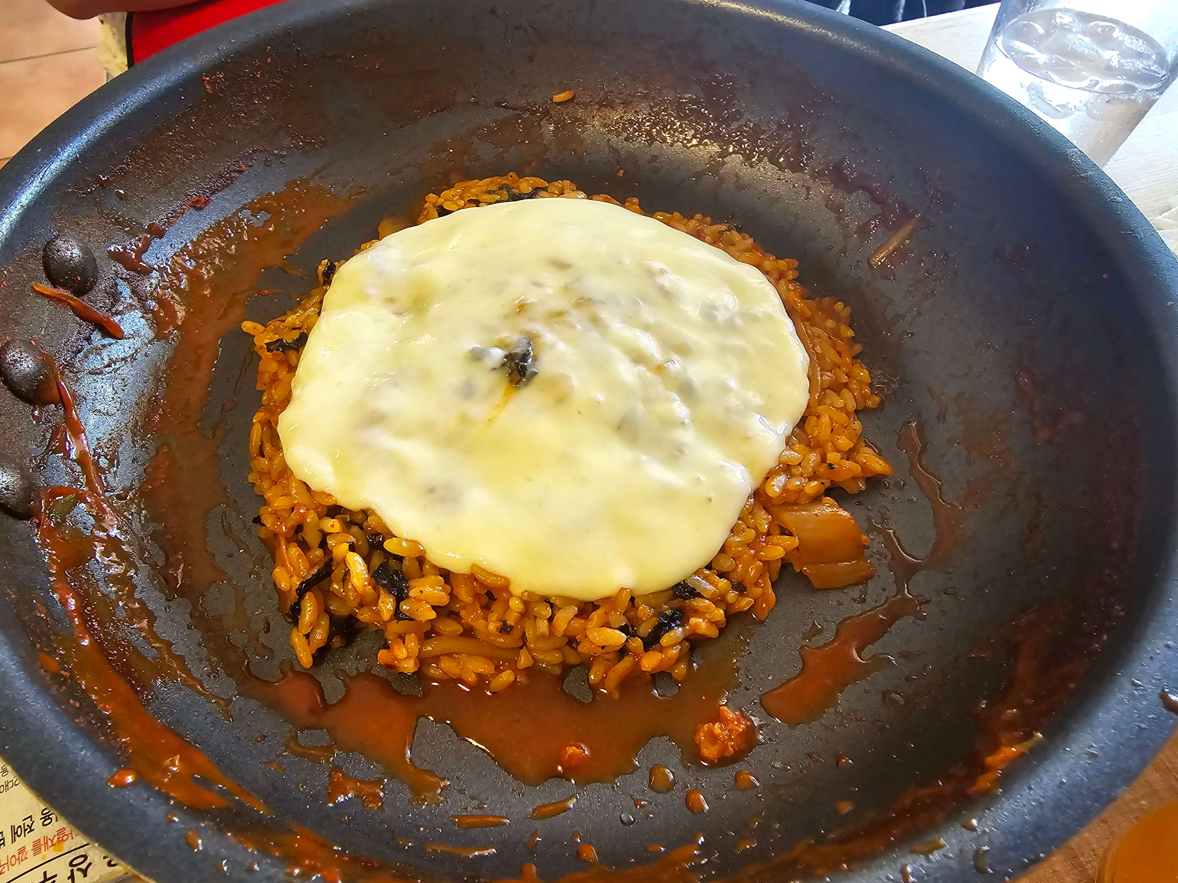 떡볶이가 나온지 얼마 되지 않아 나온 작은 게 튀김도 방금 튀긴 거라 따끈하고 바삭해서 맛있게 먹었습니다. 같이 나온 소스를 찍어먹으니 딱 좋더라고요. 떡볶이를 다 먹고, 볶음밥에 치즈를 추가해서 시켰습니다. 주방에서 볶아다 주셨는데, 안에서 불쇼를 하시는 것 같더니 볶음밥에서 불맛이나 배가 부른데도 다 긁어먹었습니다.